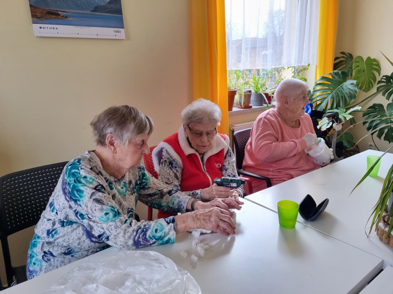 Zimní výzdoba připravená s klienty na kroužku ručních prací.