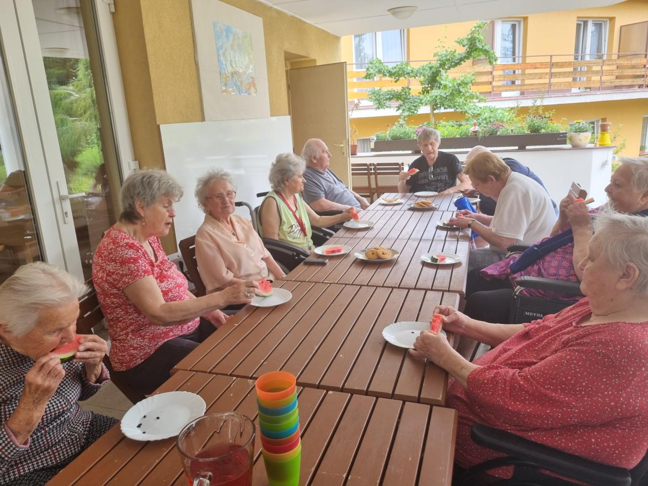 Léto u nás v domově je obdobím radosti a společných chvil na čerstvém vzduchu. Využíváme každou příležitost k pobytu venku – na naší zahradě nebo terase, kde posedíme u dobré kávy.